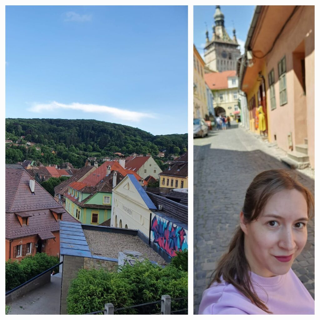 La ultima mea evadare am ales Brasovul pentru ca este unul din orasele mele de suflet, iar anul acesta am decis sa merg in alta parte si de minune s-a potrivit Sighisoara pentru ca este exact ce imi doream, o zona linistita unde sa ma pot bucura de cateva zile de deconectare (bineinteles ca nu m-am cazat in centru tocmai din considerentul de a fi inconjurata de liniste si pace). Desi alesesem locul acesta deoarece stiam ca este o locatie frumoasa, am ramas surprinsa de faptul ca este una tip rurala, eu avand impresia ca este un oras asemanator cu Brasov. Ceea ce mi-a placut pentru ca… ati ghicit 🤪, e mai multa liniste in jur, sunetul predominant este cel al ciripitului pasarelelor si nu cel al zgomotului motoarelor, iar zona in care sunt cazata este ferita de aglomeratie (deși atunci cand ma latra cainii pe traseu in plimbarile mele pana-n centru as prefera sa nu fiu singura in vizorul lor ca macar sa aiba de unde alege dulăii sau macar sa am sansa de a fugi mai repede decat altii 🤣).